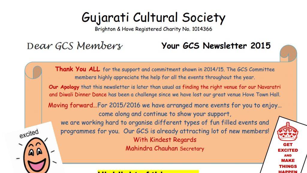 Dear Members I am delighted to confirm that Gujarati Cultural Society of Brighton and Hove has been successful in achieving Welcome Partner status for the Community Reception in honour of His Excellency, the Honourable Prime Minister of India, Shri Narendra Modi. The event, UKWelcomesModi, will take place on 13 November 2015 at Wembley Stadium. As […]